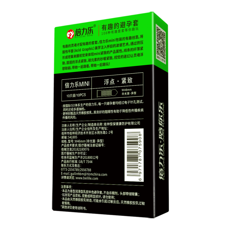 【避孕润滑】倍力乐小时代MINI安全套10只装(绿黄粉包装随机发)